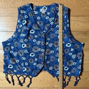 Vintage Stefano International Vest Fringe Beads Art Abstract Floral
