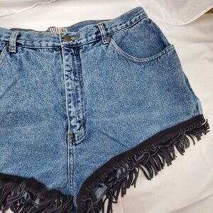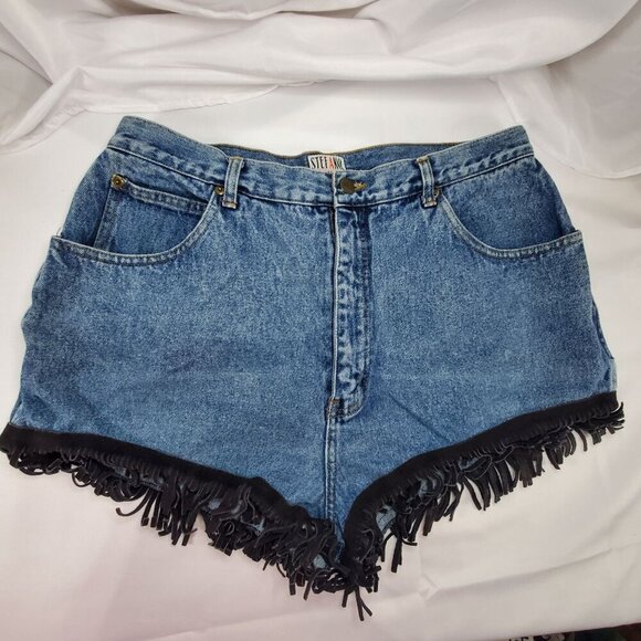 VTG Stefano Womens Size 20 Denim Fringe Shorts Repurposed Upcycled Daisy Dukes