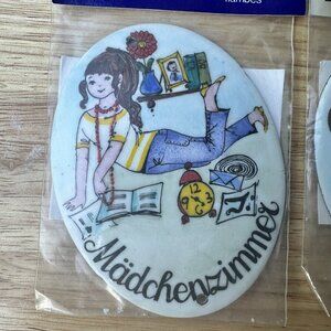 The plaques are original and feature a unique German European style, making them a great addition to any child room or art-themed bedroom. These collectibles are perfect for those who appreciate the art of handcrafted wall decor. Bring a touch of Austria into your home with these one-of-a-kind Steinbock door ornaments. New in Original Factory Sealed Packaging, Unused.