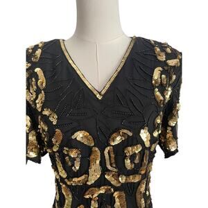 VTG. Stenay Silk Blouse Womens S Black Gold Sequin Beaded Top 90s Glam New Years