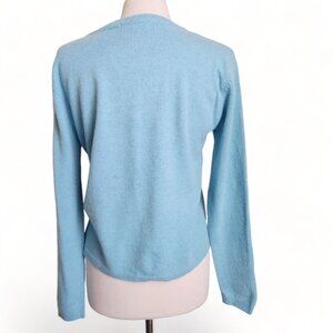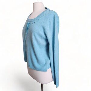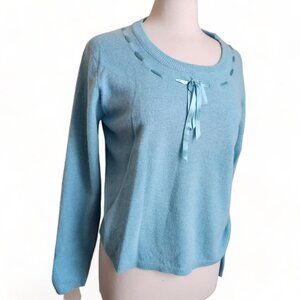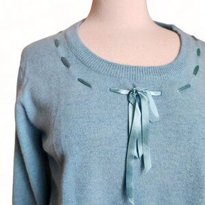 VTG Stephanie Andrews Womans Sweater Large Ribbon Blue Ribbed Lambswool Angora