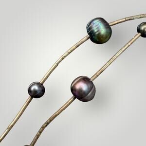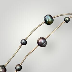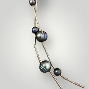 VTG Sterling 925 Double Strand Necklace with Iridescent Black Baroque Pearls