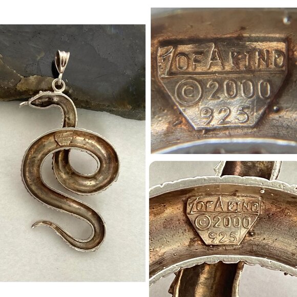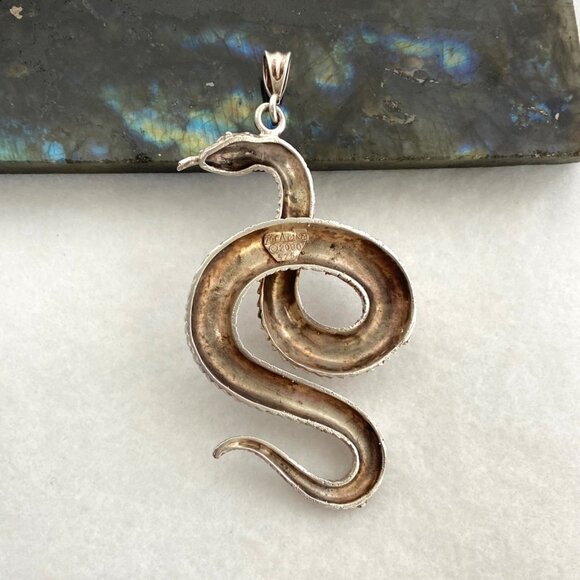 VTG Sterling Silver “1 Of A Kind” Large Diamond Cut Snake Serpent Pendant 29g