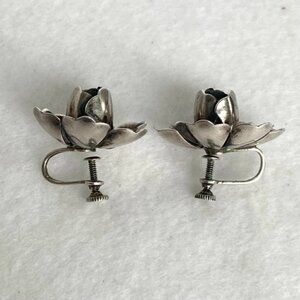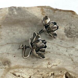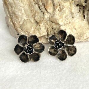 VTG Sterling Silver 925 0.89" 3D Oxidized Layered Flower Screw Back Earrings 8g