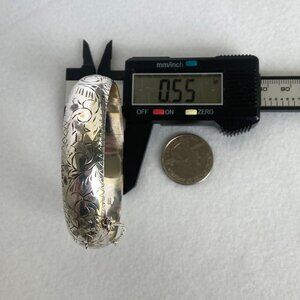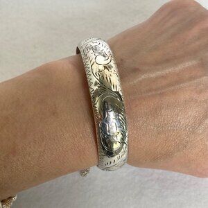 VTG Sterling Silver 925 14MM Wide Hollow Etched Scroll Round Bangle Bracelet 7"
