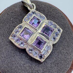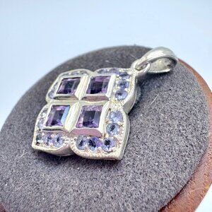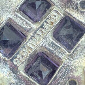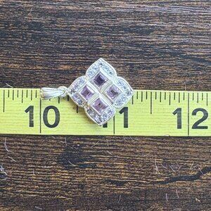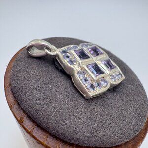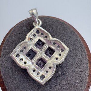 VTG Sterling Silver 925 Amethyst & Blue Cubic Zirconia Pendant Size 1.25" Length
