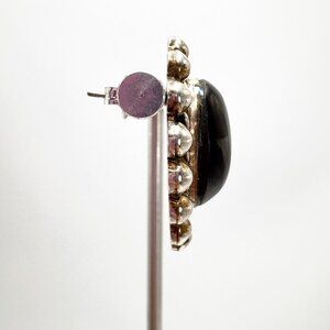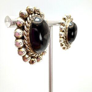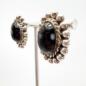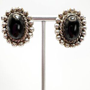 VTG Sterling Silver 925 Black Onyx Bezel Set Beaded Stud Earrings