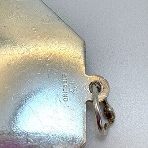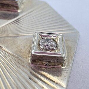 VTG Sterling Silver 925 Black & White CZ Octagonal Ridged Pendant Charm 1.25"