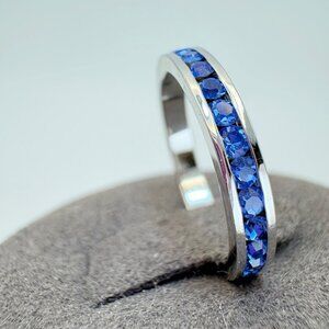 VTG Sterling Silver 925 Blue Cubic Zirconia Channel Set Statement Ring
