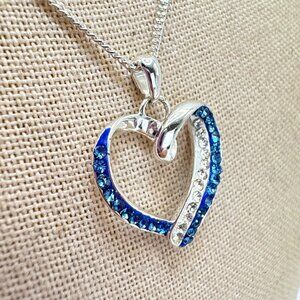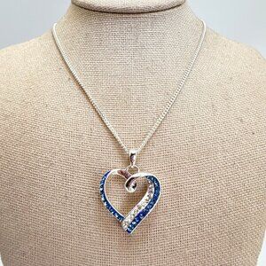 VTG Sterling Silver 925 Blue & White CZ Heart Pendant Necklace