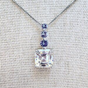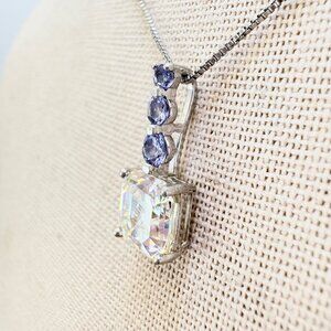 VTG Sterling Silver 925 Blue & White CZ Pendant Necklace