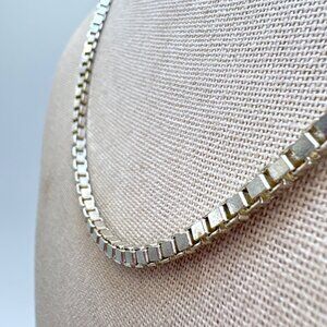 VTG Sterling Silver 925 Box Link Chain Necklace Lobster Clasp