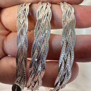 VTG Sterling Silver 925 Braided Herringbone Chain Spring Ring Clasp