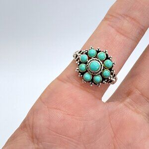 VTG Sterling Silver 925 Cabochon Turquoise Bezel Set Statement RIng