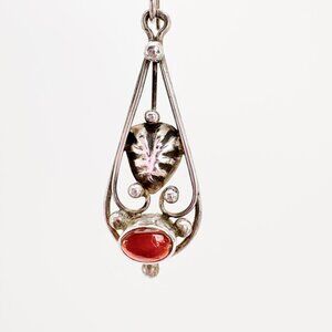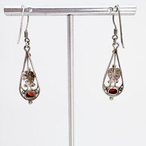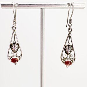 VTG Sterling Silver 925 Carnelian Leaf Design Dangle Earrings
