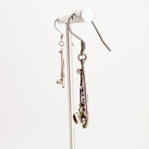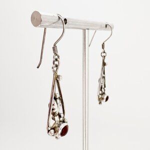 VTG Sterling Silver 925 Carnelian Leaf Design Dangle Earrings Size 1.75" Length