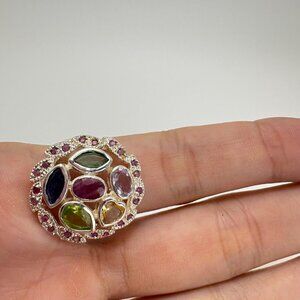 VTG Sterling Silver 925 Citrine Peridot Multi-Stone Statement Ring
