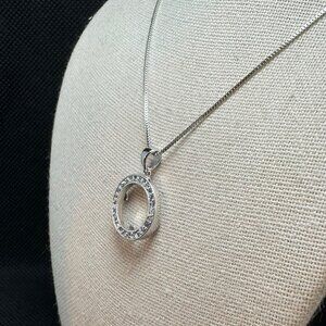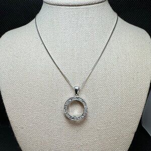 VTG Sterling Silver 925 Cubic Zirconia Circle Pendant Necklace Box Link