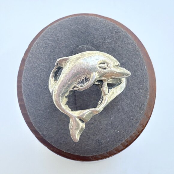 VTG Sterling Silver 925 Dolphin Design Openwork Statement Ring
