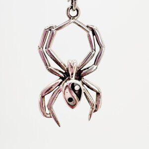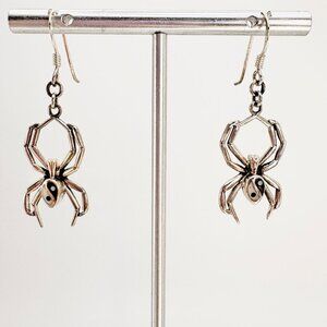 VTG Sterling Silver 925 Enamel Yin Yang Spider Dangle Earrings