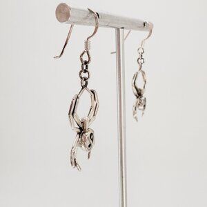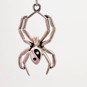 VTG Sterling Silver 925 Enamel Yin Yang Spider Dangle Earrings Size 1.75" Length