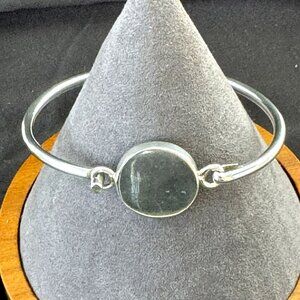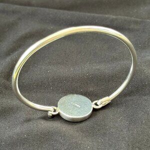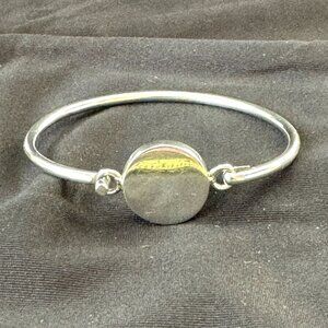 Vintage Sterling Silver 925 Engravable Round Disc Hook Opening Bangle Bracelet