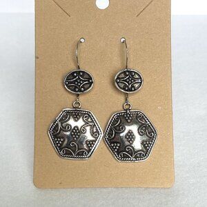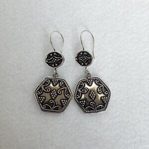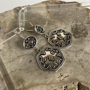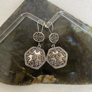 VTG Sterling Silver 925 Etruscan Moroccan Style Hexagonal Drop Dangle Earrings