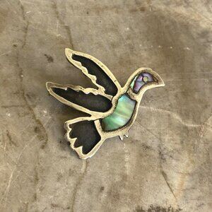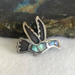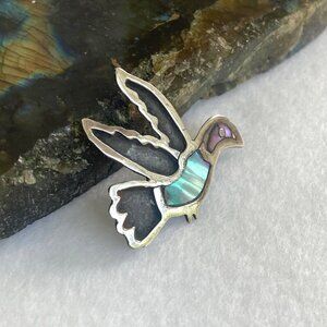 VTG Sterling Silver 925 FC Taxco Mexico Abalone Inlay Hummingbird Brooch Pin