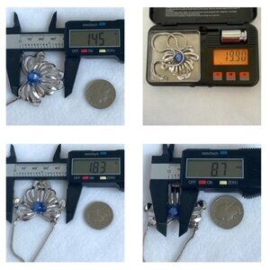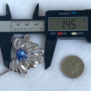Vintage Sterling Silver 925 Signed Forstner Blue Cats Eye Glass Floral Pendant Necklace