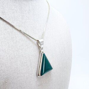 VTG Sterling Silver 925 Green Onyx Triangle Pendant Necklace