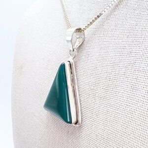 VTG Sterling Silver 925 Green Onyx Triangle Pendant Necklace Size 30" Length
