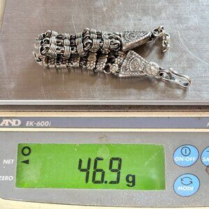 VTG Sterling Silver 925 Heart Flower Design Vintage Link Bracelet Hook Clasp