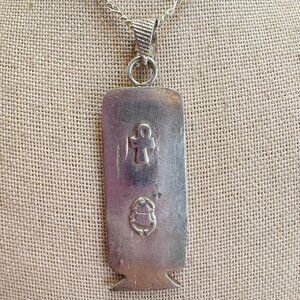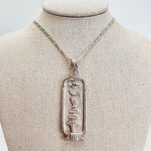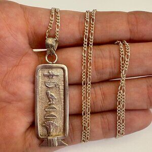 VTG Sterling Silver 925 Hieroglyphic Pendant Chain Necklace