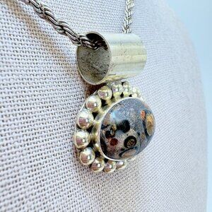 VTG Sterling Silver 925 Leopard Jasper Bezel Set Pendant Necklace