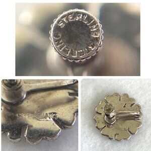 VTG Sterling Silver 925 Marcasite Floral Flower Screw Back Earrings