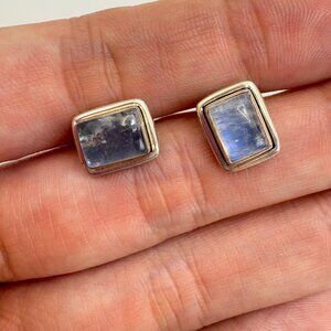 VTG Sterling Silver 925 Moonstone Bezel Set Stud Earrings