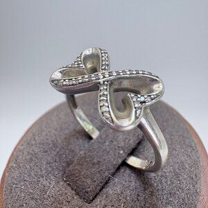 VTG Sterling Silver 925 Natural Diamond Open Hearts Infinity Ring