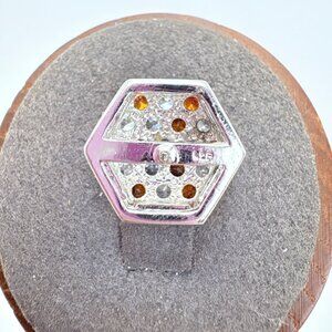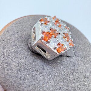 VTG Sterling Silver 925 Orange & White Cubic Zirconia Slide Charm