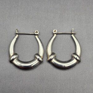 VTG Sterling Silver 925 Puffy Hoop Earrings 1.25" Knot Detail Hinged Closure