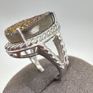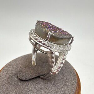VTG Sterling Silver 925 Purple Gray Drusy Oval Rope Design Statement Ring