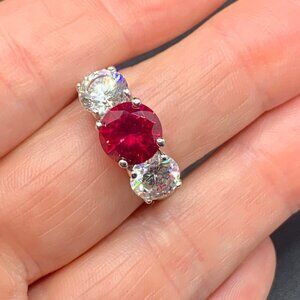 Triple stone Red Crystal and CZ each stone is set in a 4-prong basket mounting