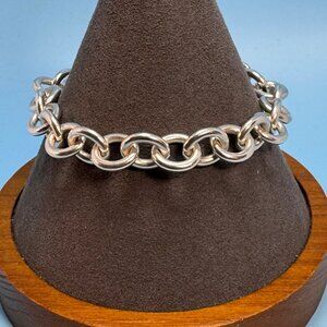 VTG Sterling Silver 925 Round Link Chain Bracelet Lobster Claw Clasp