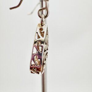 VTG Sterling Silver 925 Scroll Design Teardrop Dangle Earrings