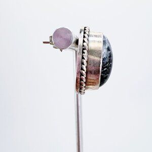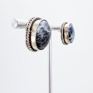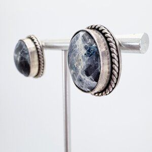 VTG Sterling Silver 925 Sodalite Bezel Set Oval Dangle Earrings One Size