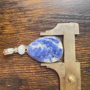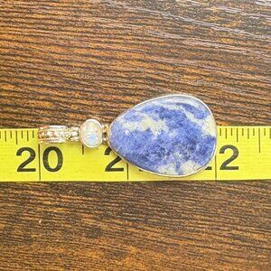 VTG Sterling Silver 925 Sodalite Bezel Set Statement Pendant Size 2" Length