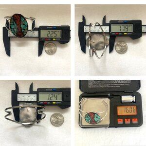VTG Sterling Silver 925 Southwest Oval Crushed Turquoise Coral Cuff Bracelet