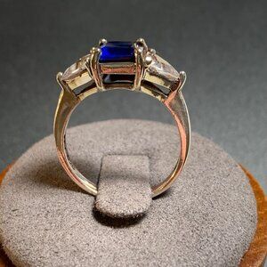 VTG Sterling Silver 925 Synthetic Sapphire & CZ Engagement Style Ring Size 7