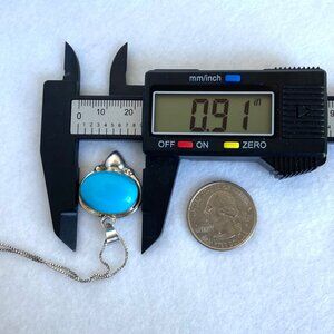 VTG Sterling Silver 925 Taxco Mexico Turquoise Cabochon Pendant Necklace 18"