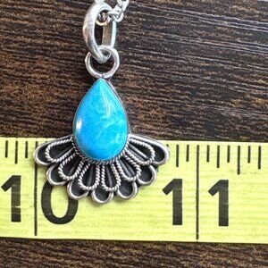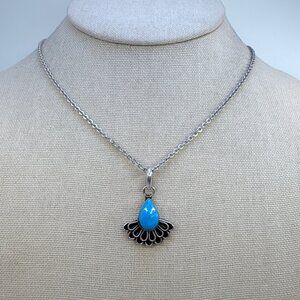 VTG Sterling Silver 925 Teardrop Turquoise Bezel Set Pendant Necklace