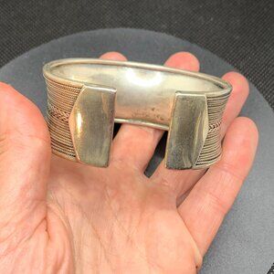 VTG Sterling Silver 925 Textured Twist Rope Design Cuff Bracelet Size 1.25" Wide